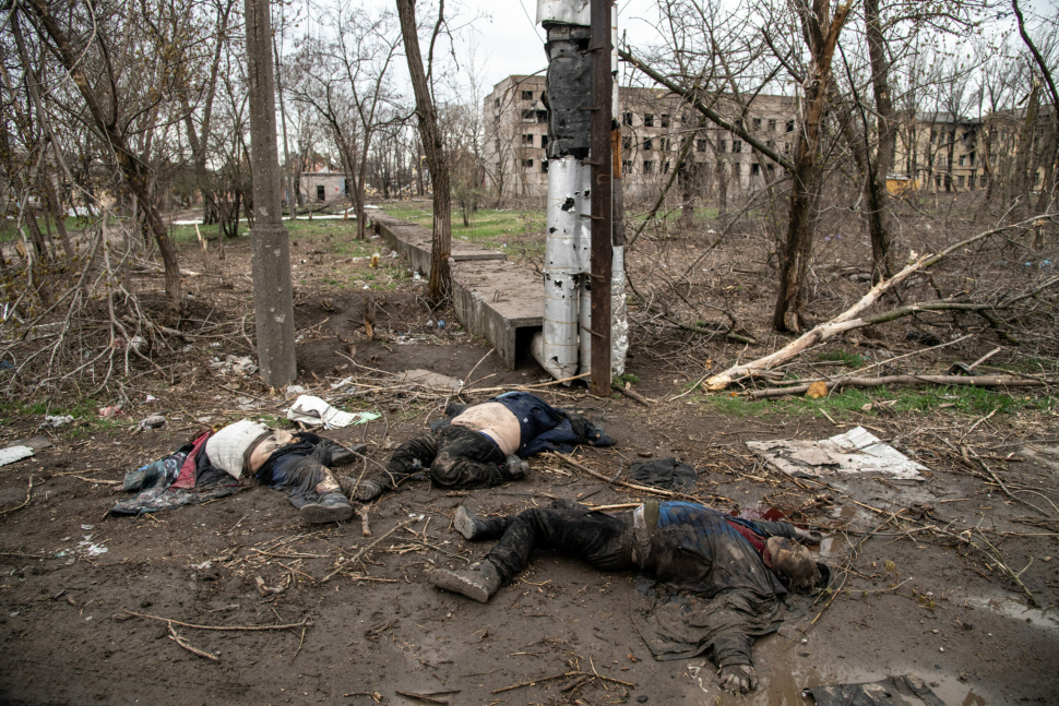 Civil halottak Mariupol városában. Mariupol ostroma 2022 február 24-én kezdődött és az oroszok május 16-án aratott győzelmével ért véget. A harcokban orosz források szerint 4200, az ukránok állítása szerint ugyanakkor akár 20 ezer helyi is meghalhatott. Az oroszok katonai vesztesége minden bizonnyal eléri a többezer főt. Az Azovi-tenger partján fekvő város elfoglalása kulcsfontosságú volt az orosz erőknek, hogy összeköttetést hozzanak létre a krími és donbaszi haderejük között.